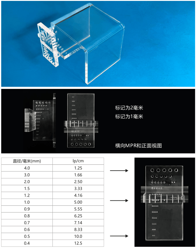利用螺旋/螺旋CT,评估轴位图像和冠状位重建,可以通过单次扫描测试空间 3D分辨率。