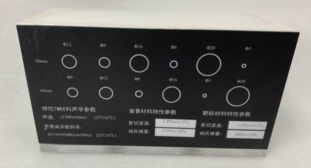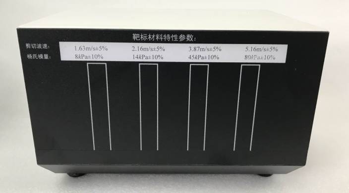 体模中的靶标材料分为两种,23℃时剪切波速度为1.29m/s±5%和5.16m/s±5%,杨氏模量分别为5kPa±10%和80kPa±10%。