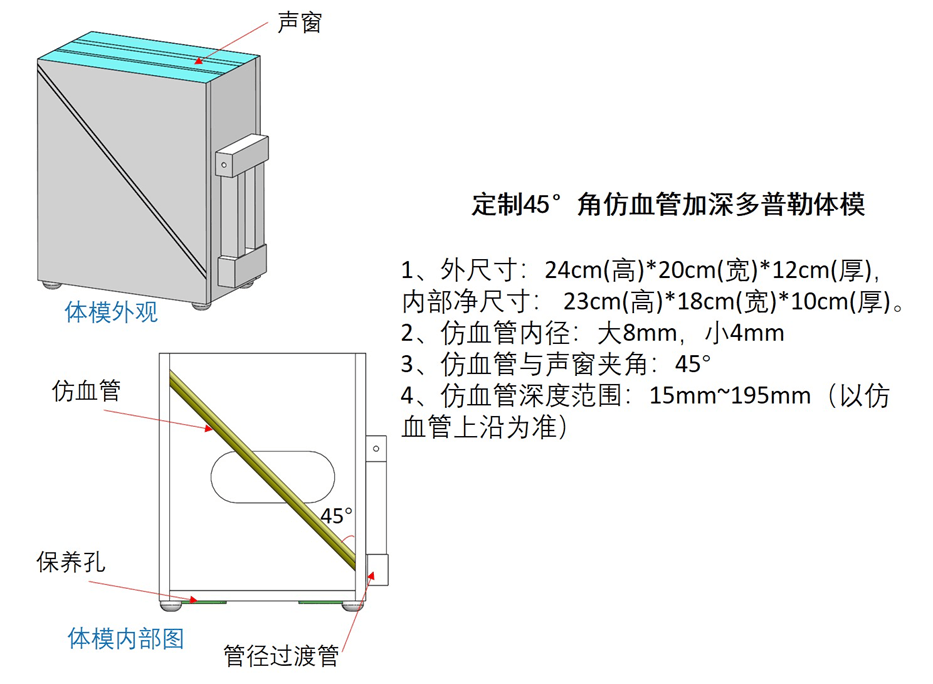 参照国家标准GB10152—2009,结合培训需求超声体模的技术参数为: