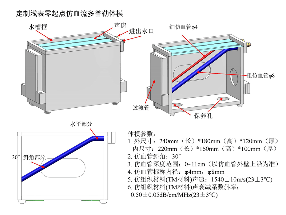 参照国家标准GB10152—2009,结合培训需求超声体模的技术要求,该体模的技术参数如下: