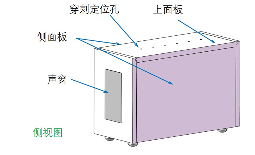 1.外壳由两个塑料侧壁,内底面由有机玻璃制成,侧面由塑料和23cm×32cm薄膜声窗组成;