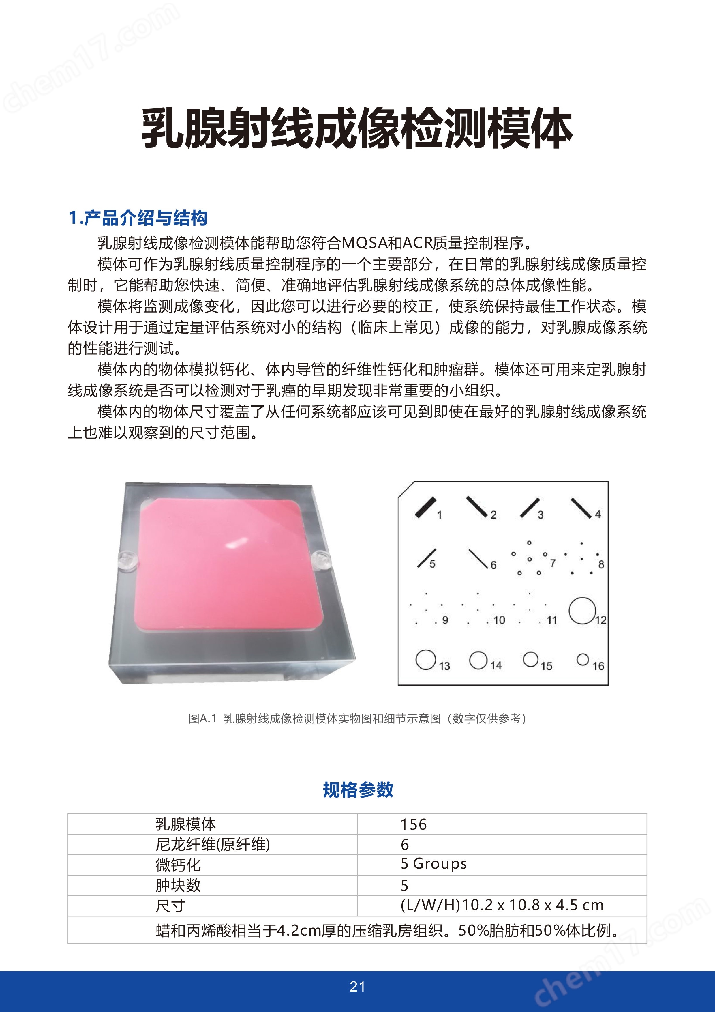 模体将监测成像变化,因此您可以进行必要的校正,使系统保持工作状态。模体设计用于通过定量评估系统对小的结构(临床上常见)成像的能力,对乳腺成像系统的性能进行测试。