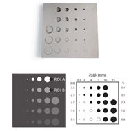 低对比度细节模体由 10mm 厚的方形铝板制成。在该铝板上分布着直径为 0.5mm(5个),2mm(5个),4mm(5个),7mm(5个),10mm(5个),15mm(3个)的圆孔,孔的深度(mm)及...